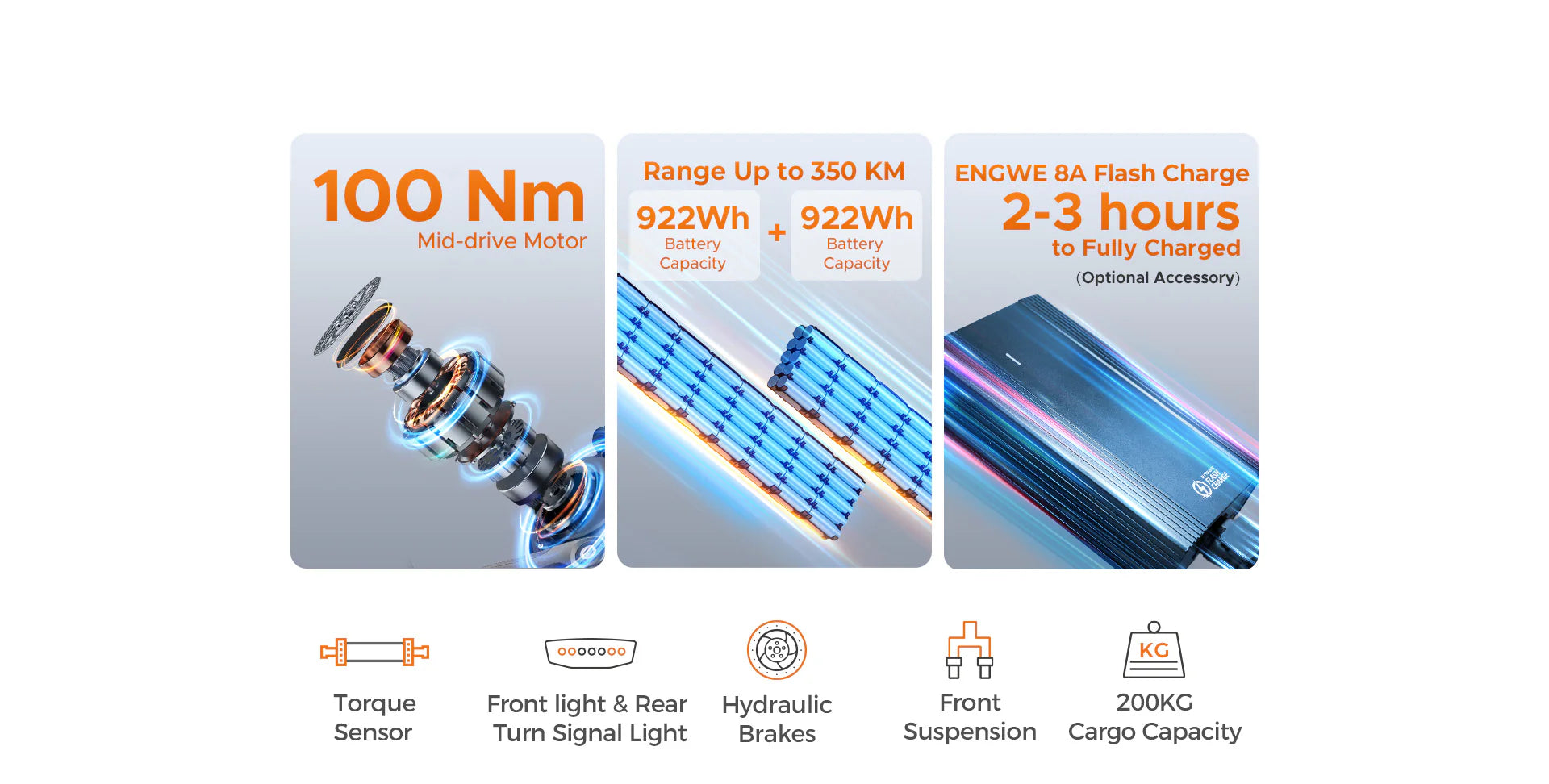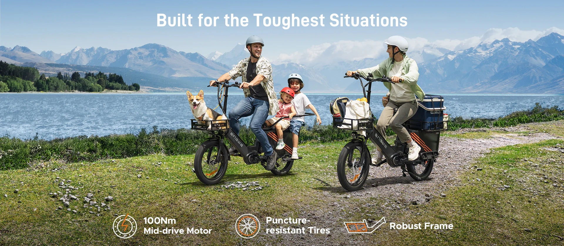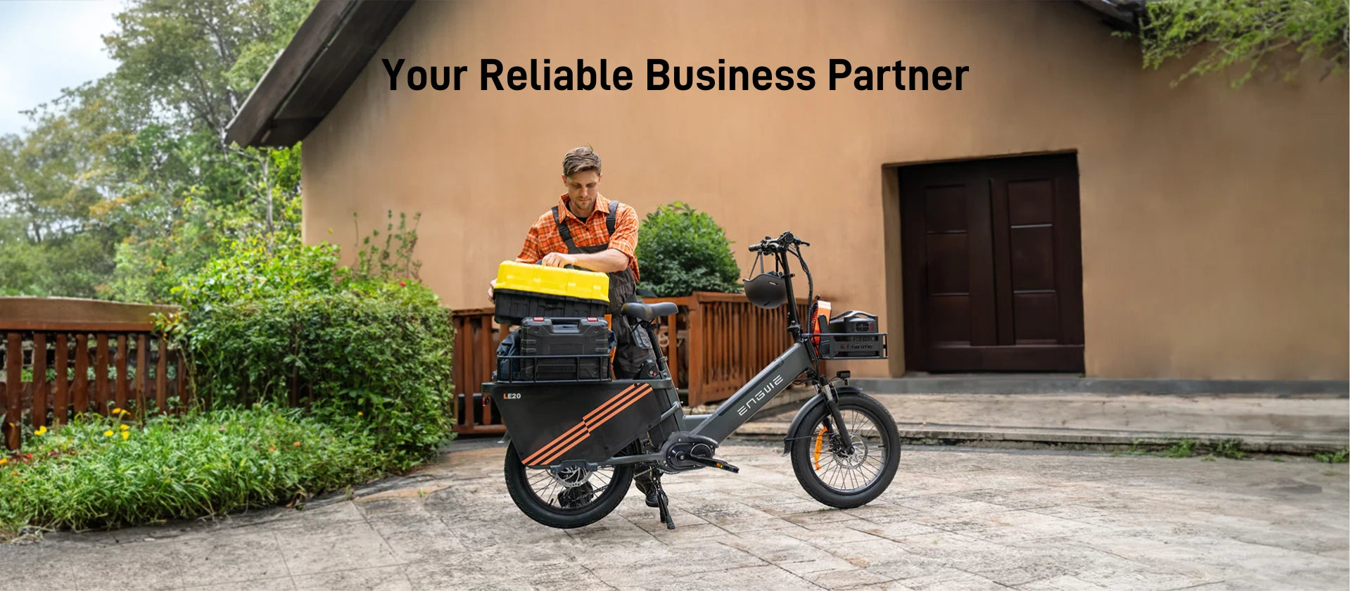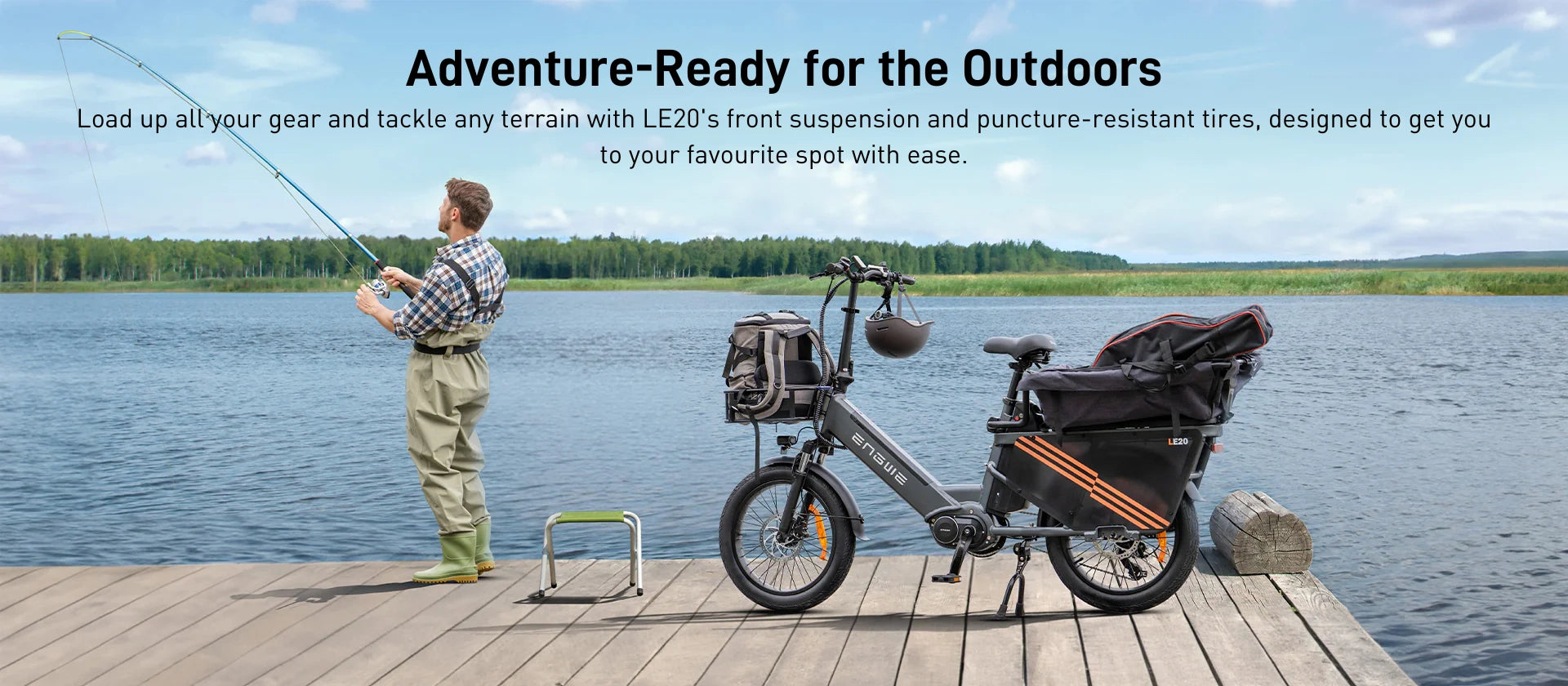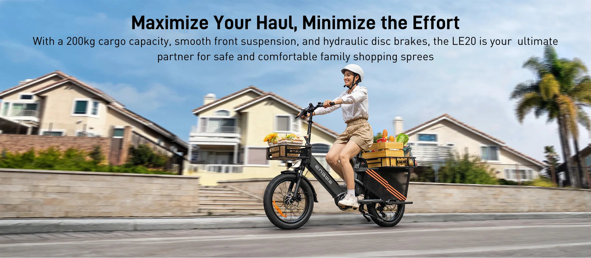 The ENGWE LE20 is a powerful cargo e-bike featuring a 1300W peak motor, up to 211-mile range, and 440 lbs load capacity. Equipped with hydraulic disc brakes and a torque sensor, it's perfect for urban commuting and heavy-duty transport.