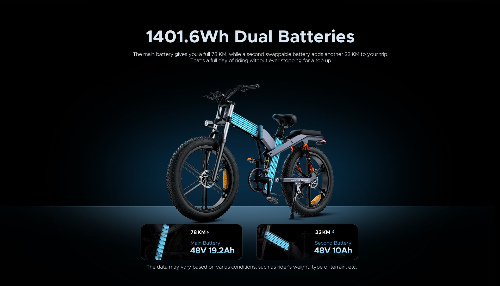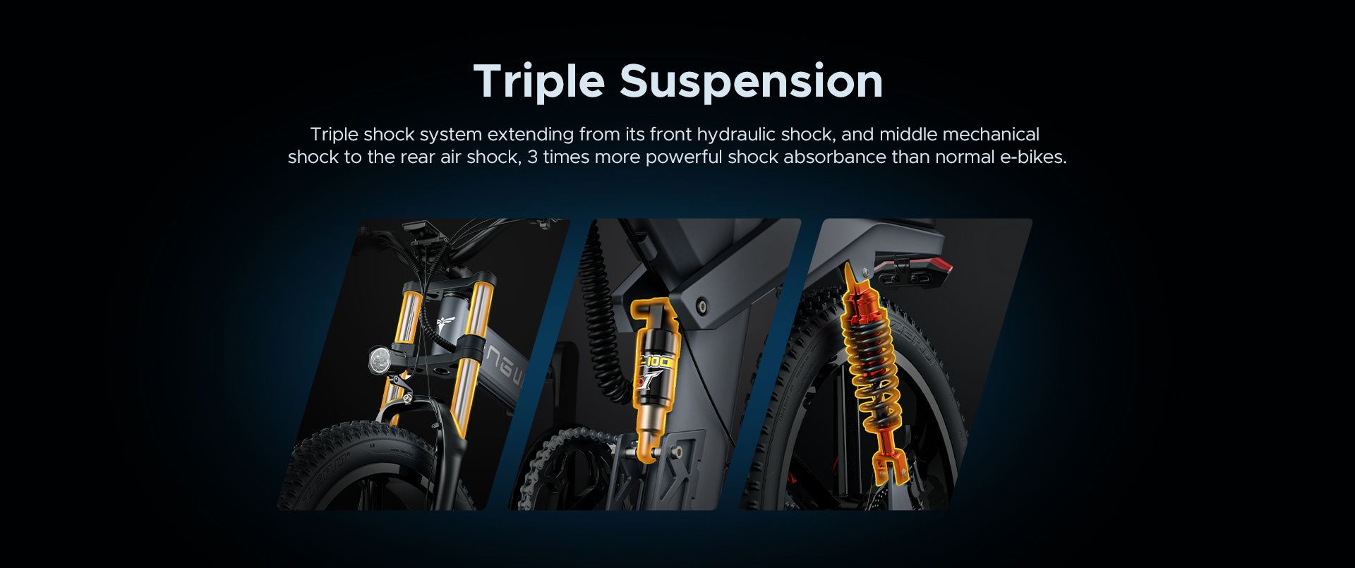 A powerful dual-battery e-bike with 1200W motor, triple suspension, and 26” fat tires. Perfect for off-road adventures and city commutes alike.